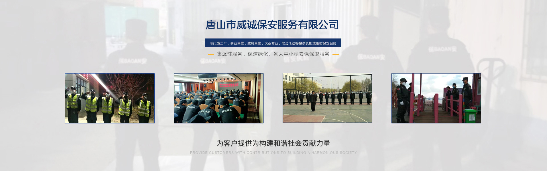 唐山市威誠保安服務(wù)有限公司自成立以來以“嚴(yán)防死守、忠于業(yè)主”為服務(wù)原則,以“客戶滿意、 合作共贏”為根本目標(biāo)。以科學(xué)的管理、多方位多層次的服務(wù),建立了首問責(zé)任制,完善了走訪、回訪 、滿意度調(diào)查、末位淘汰的預(yù)警管理,不斷提高服務(wù)質(zhì)量,提高業(yè)主滿意度,提高企業(yè)形象。秉承“誠 實(shí)守信,紀(jì)律嚴(yán)明,團(tuán)結(jié)協(xié)作,致精致誠”的服務(wù)理念,為客戶提供高品質(zhì)、多方位、專業(yè)化的保安服務(wù)。 本公司制定了嚴(yán)謹(jǐn)?shù)亩ㄏ蛘猩徢芭嘤?xùn)、考核錄用、崗中培訓(xùn)、持續(xù)培訓(xùn)、末位淘汰制等一整套完善的管理體系。可以根據(jù)客戶的要求實(shí)地勘察評(píng)估,以量身定做的方式提供安保防范服務(wù)。